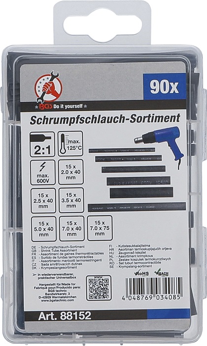 BGS 88152 Schrumpfschlauch-Sortiment | schwarz | 90-tlg.