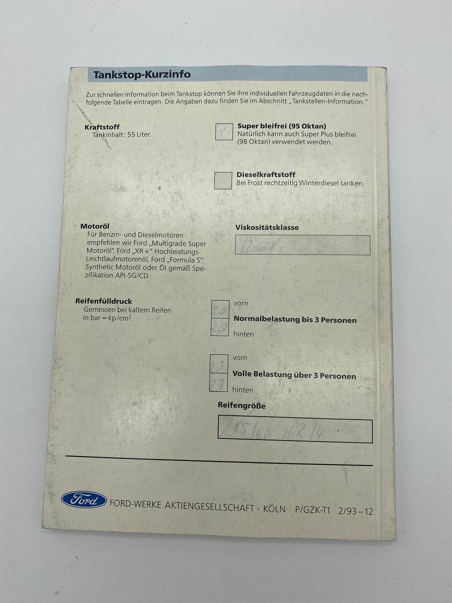 FORD Escort Bedienungsanleitung 2/1993