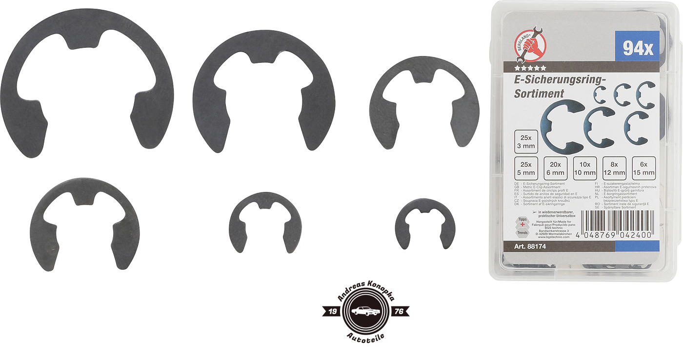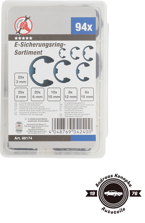 Kraftmann  88174 E-Sicherungsring-Sortiment | 3 - 15 mm | 94-tlg.