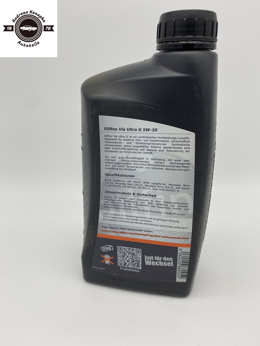 oilfino Via Ultra G ist ein synthetisches Hochleistungs-Longlife-Motorenöl für moderne Otto- und Dieselmotoren, einschließlich Turbomotoren und Direkteinspritzer. Synthetische Komponenten sowie ausgewählte Additive gewährleisten eine hohe Kraftstoffeinsparung und dadurch eine Reduzierung der Emissionen zur Schonung der Umwelt.