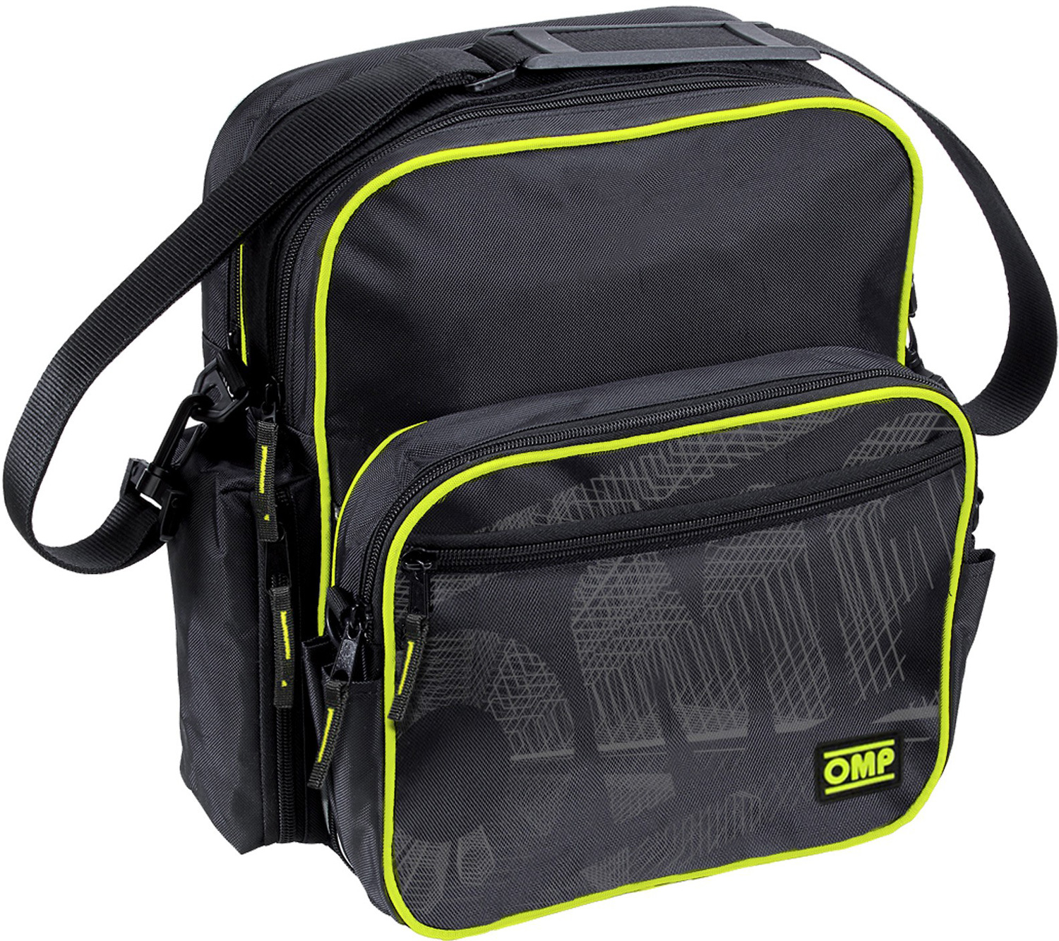 Leichte OMP Umhängetasche Co-Driver mit einem übersichtlichem Hauptfach und vielen separaten Außenfächern. Ideal für die Aufbewahrung und den Transport von verschiedenen Unterlagen. Auf der Rückseite befinden sich 2 verstellbare Schultergurte, so dass die Tasche auch als Rucksack getragen werden kann.
