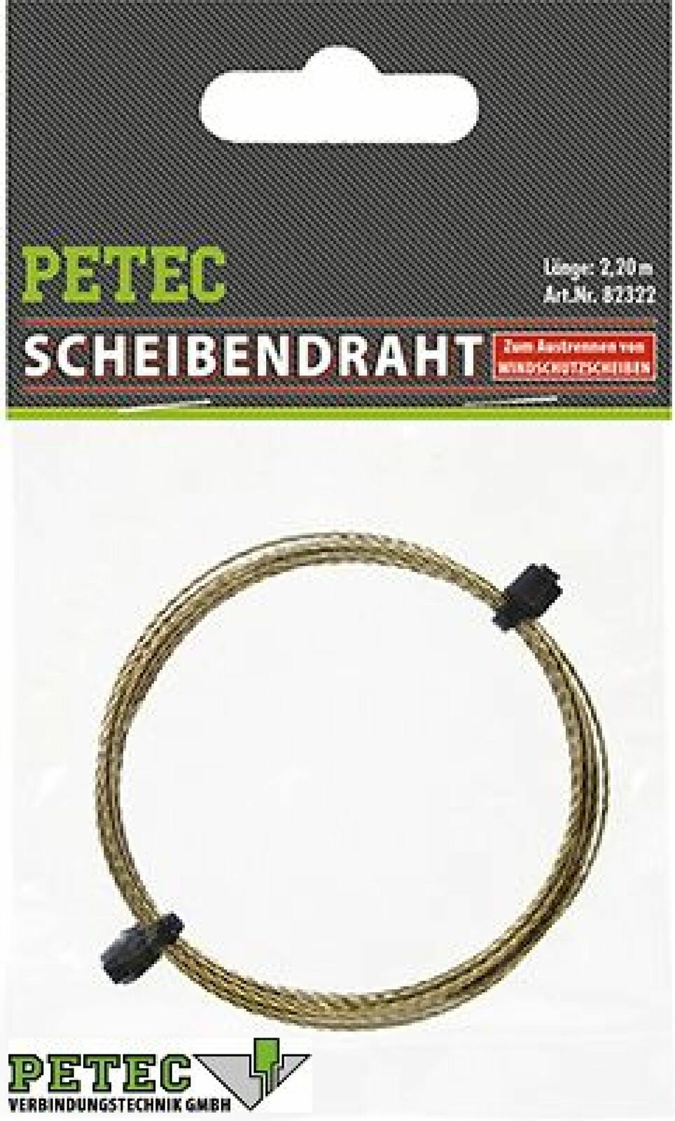 Scheibendraht mit einem Durchstechwerkzeug durch die Kleberaupe der Scheibe stechen. Den Scheibendraht an die Halteg-riffe befestigen und mit Hilfe eines zweiten Manns die Scheibe austrennen. (Download der PETEC-Einbauanleitung, Datenblätter und Anwendungsvideo unter www.petec.de)