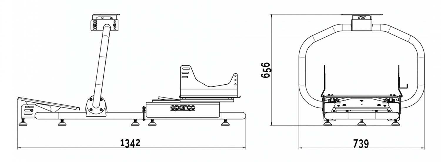 - Robuste Pedal- und Lenkradplatte – kompatibel mit den gängigsten SimRacing-Produkten verschiedenster Hersteller