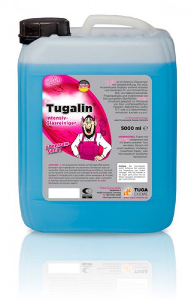 Tugalin ist ein Hochleistungs-Glasreiniger mit Langzeitwirkung. Er entfernt mühelos und streifenfrei Ruß- und Nikotinrückstände, Öl- und Schmierfilme, Fett, Staub, Fingerabdrücke, Insektenverschmutzungen u.v.m. von Glas und allen glatten Oberflächen. Die enthaltenen Nanopartikel hinterlassen auf den gereinigten Flächen eine unsichtbare Schutzschicht, welche die Wiederverschmutzung verzögert und die nächste Reinigung erleichtert. Tugalin ist ein sehr kraftvoller Glasreiniger, dessen einfache Handhabung und streifenfreie Resultate ihn schnell zu einem unentbehrlichen Helfer in Industrie, Gewerbe und Haushalt werden lässt.